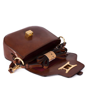 • A stunning little bag featuring intricate leather work and a beautiful brass fastening. The bag has a shoulder strap in addition to it's detachable carry handle.