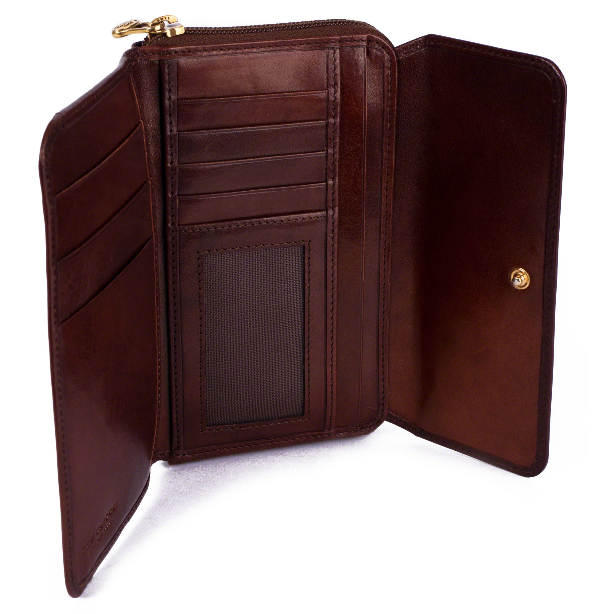 - This trifold organiser purse is designed to take everything in it's stride. Notes, coins, cards, tickets, receipts, each item has it's own section within this extremely well appointed piece of leather work.