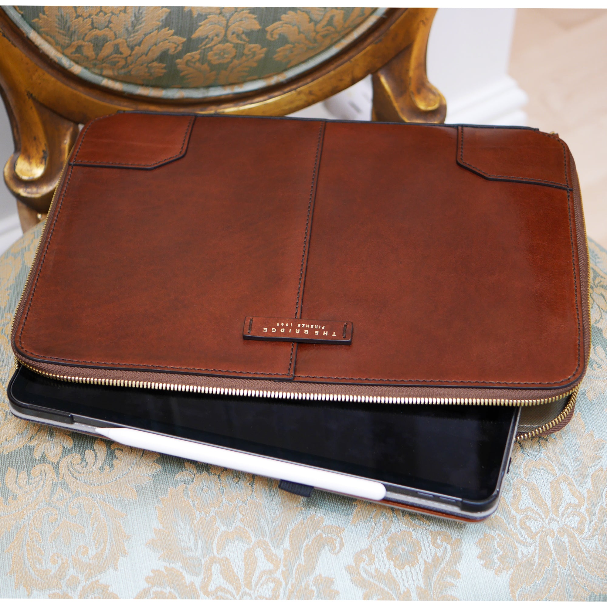 • A beautiful case to hold either a tablet or paperwork. Internal slip pockets hold notepads and pens whilst the exterior provides a carry handle to the rear.