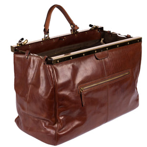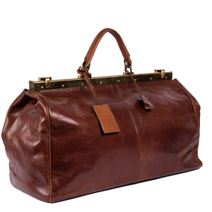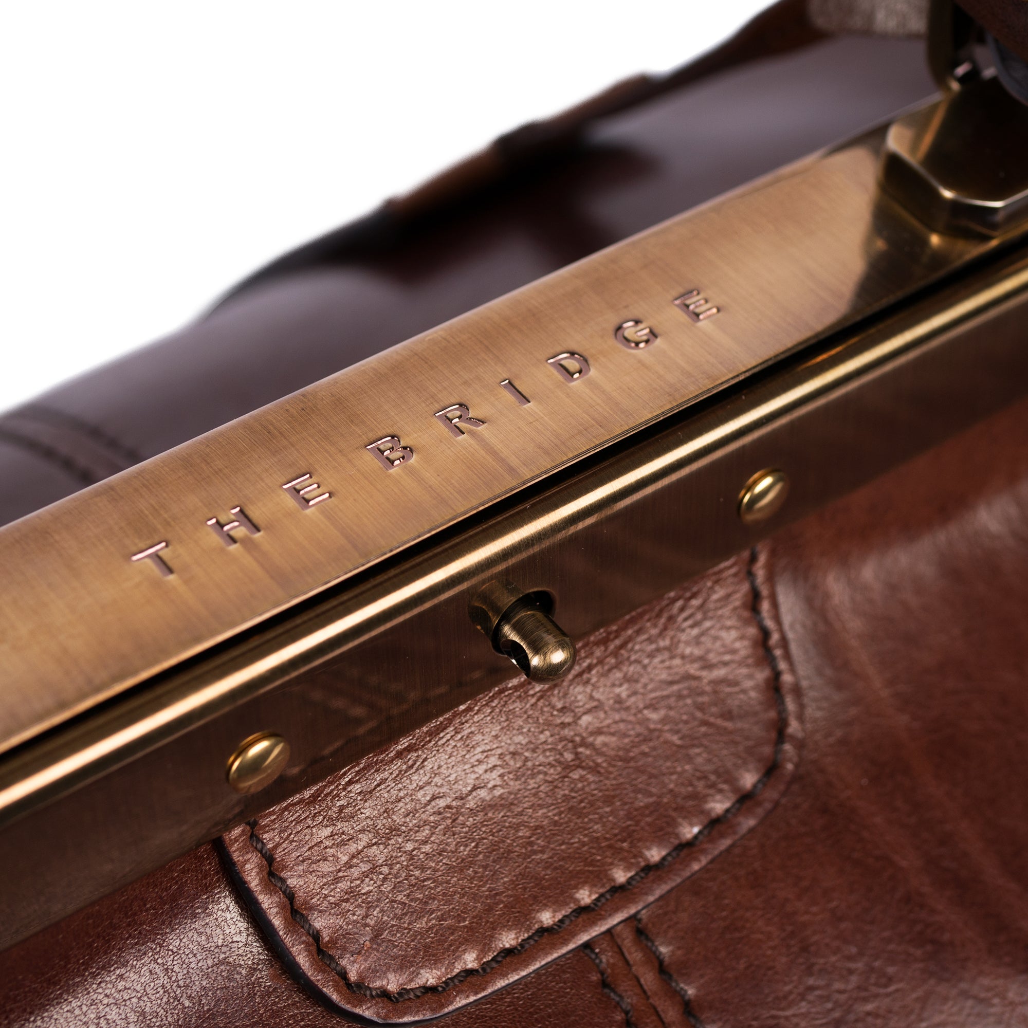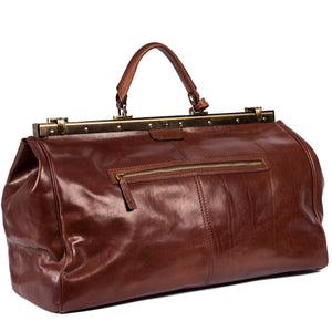 • One of the most impressive bags in The Bridge collection. The Gladstone holdall is a weekend bag for those looking for something a little different. Crafted from the finest full grain Italian leather with brass fixtures, this bag is simply stunning.