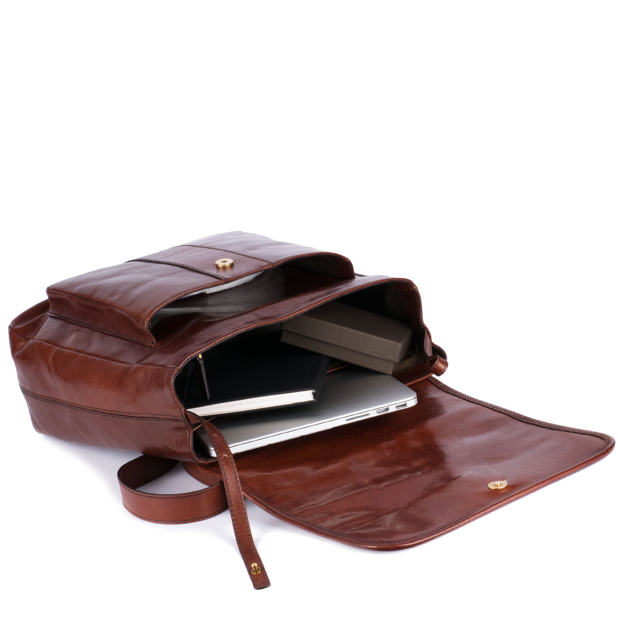 - Another beautiful example of leatherwork from The Bridge. This Rucksack features a fully padded laptop compartment within the main section of the bag allowing it to double as a workbag should you wish. Additional internal slip and zip sections allow for separation of your belongings.