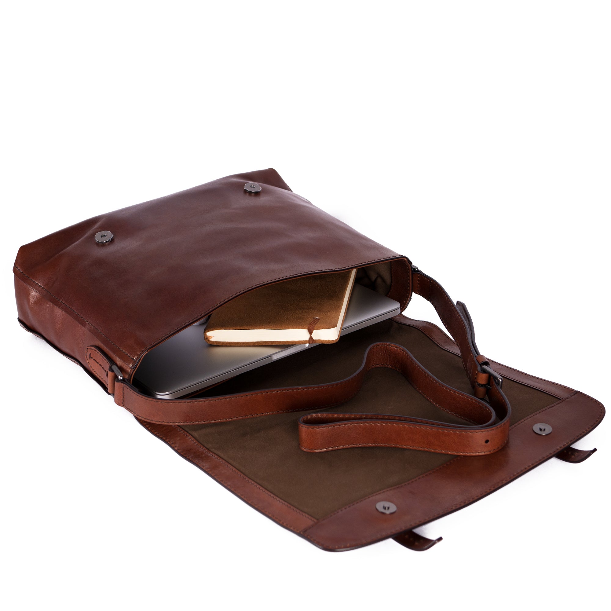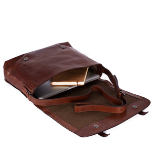 - A classic satchel design from The Bridge. A single main compartment features a padded laptop/tablet seciton plus zip and slip pockets.