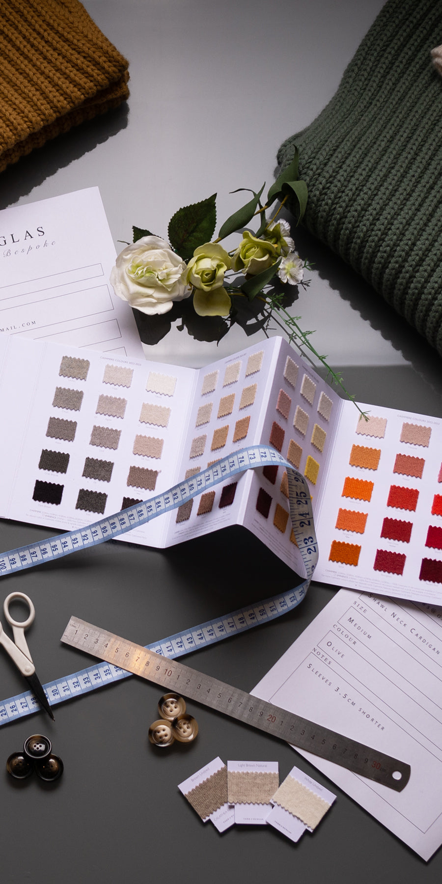 You can order any of our cashmere items in any colour you want and adjusted to your fit. Simply come into the store, pick your style, be fitted to your correct size and choose from a selection of 180 colours. We have swatches of every colour in-store so you can see how they look knitted up and we are on hand to guide you through the colours should you wish.