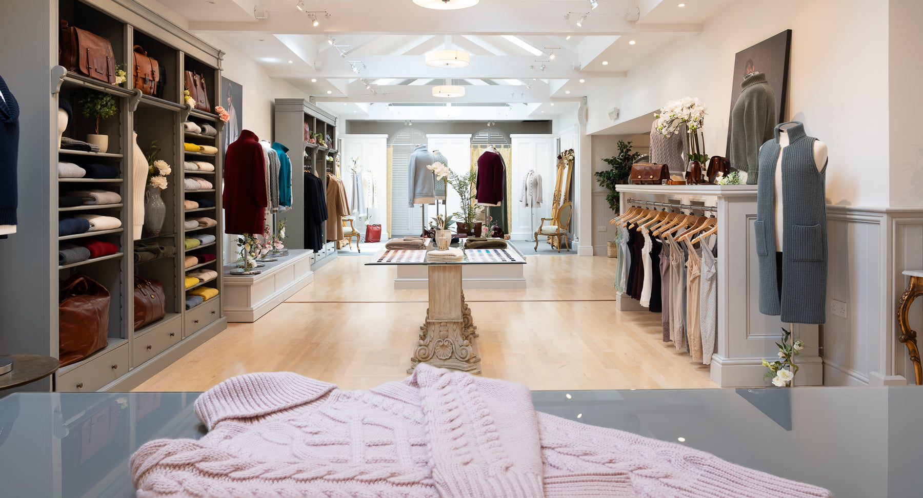 The store is also home to our bespoke cashmere services where you choose your piece and choose your colour. We then measure you for adjustments like arm and body length. The piece is then knitted to your specification delivered to your door anywhere in the world.