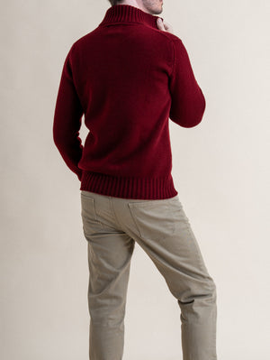Designed in a slightly heavier weight than usual, the 5 ply cashmere hangs perfectly whilst keeping you warm. When worn over shirts, it's extra body minimises any creases or buttons in the shirt showing through.