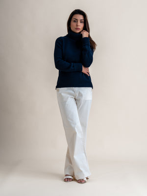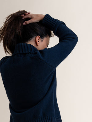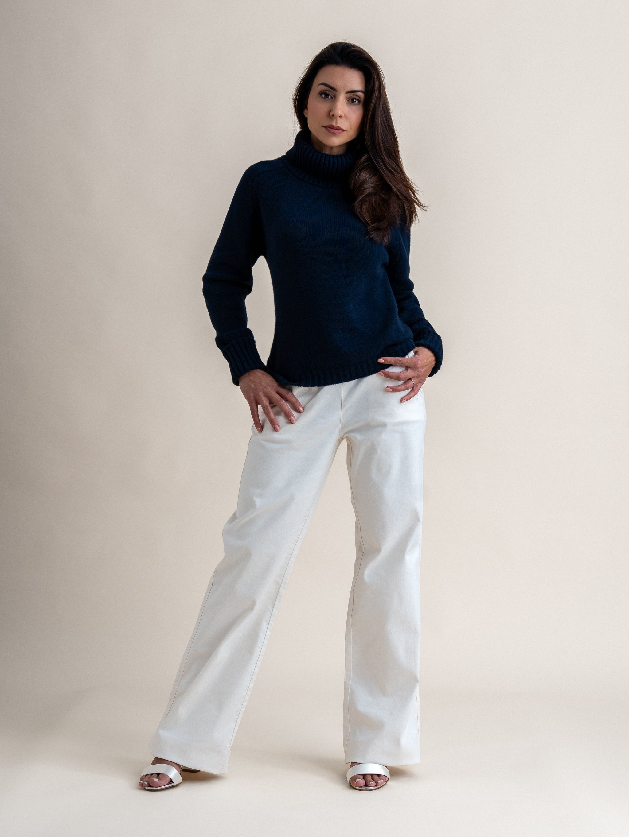 Designed with a soft A-line from the bust down and split hem to allow the sweater to sit past the hips without catching. Turn back cuffs match the roll down collar for a wardrobe staple.