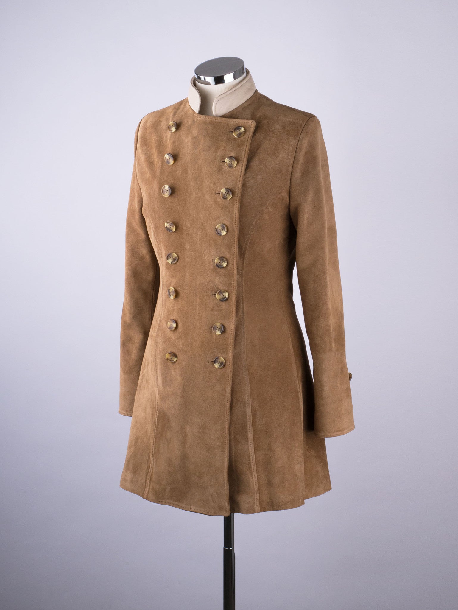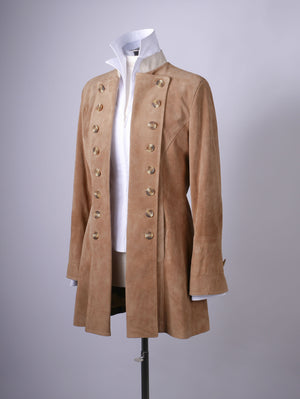 Made in very limited runs, The Josephine Suede is an icon piece whilst retaining all the practicality that makes it's namesake so popular. Wearable as a button back, full double breasted or a large revere collar, it is a coat that turns heads wherever it goes.