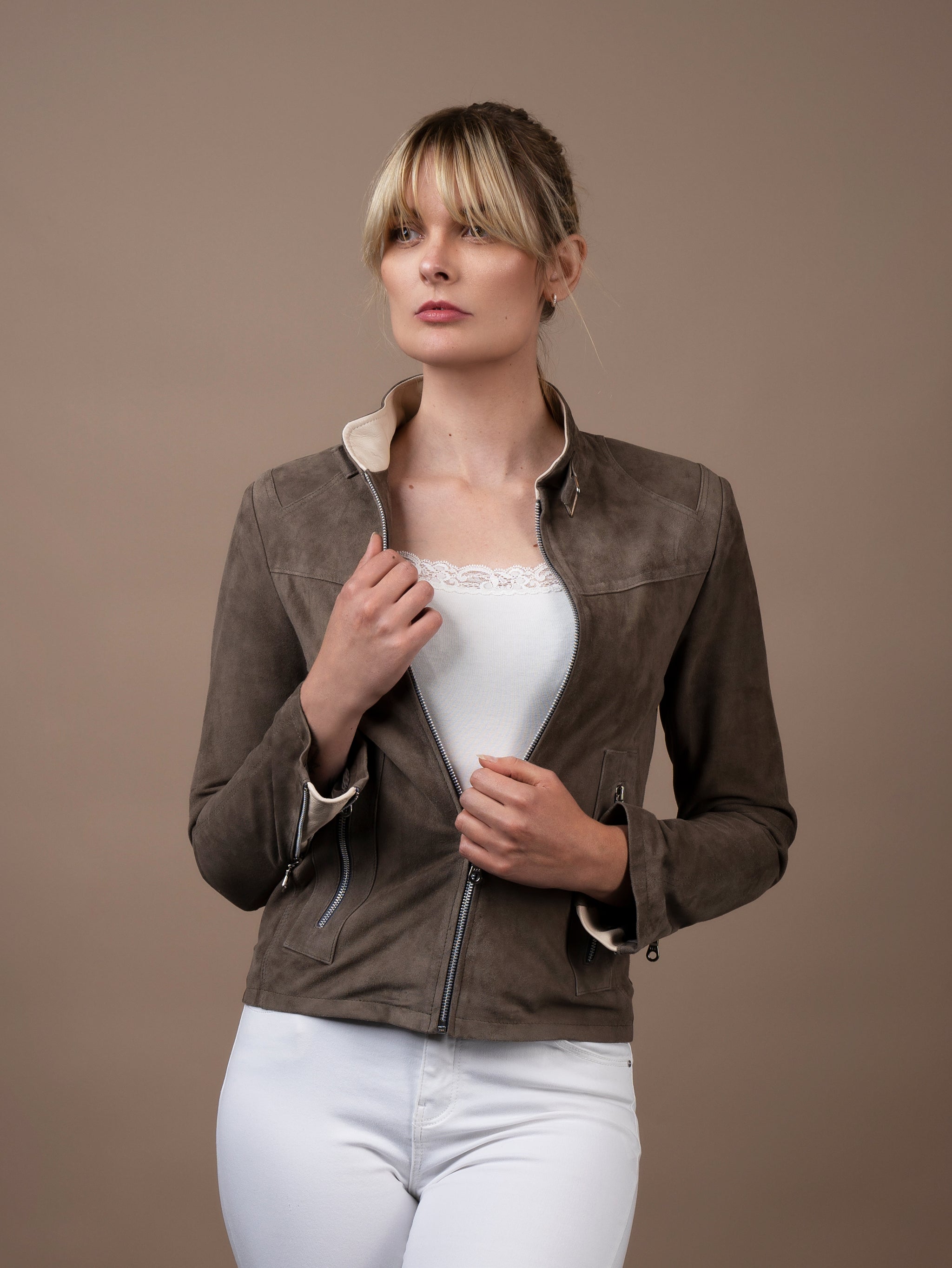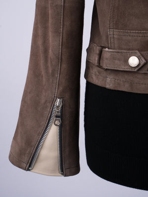 This particular variation is hand cut and stitched together from the highest grade Spanish goat suede making it not only beautifully soft and light, but strong and functional. The mushroom colour is complimented by a cream calf leather to the inside of the collar and cuffs. Fully lined and with solid metal fixings, The Kidd has taken it's place as a classic piece within the Douglas Attire Originals.