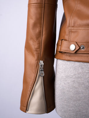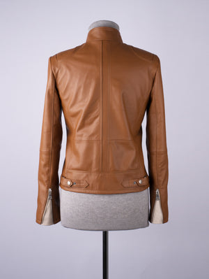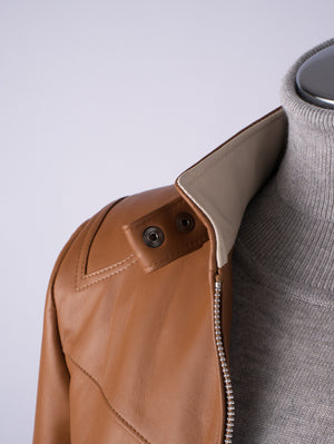 • We designed the Douglas Kidd with the intention of blending a classic leather jacket with a sharp Italian cut and shape. The result is a fitted cropped jacket with intricate double stitching, insert contrasting cream leather work on the cuff/collar and brushed steel buckle fixings.