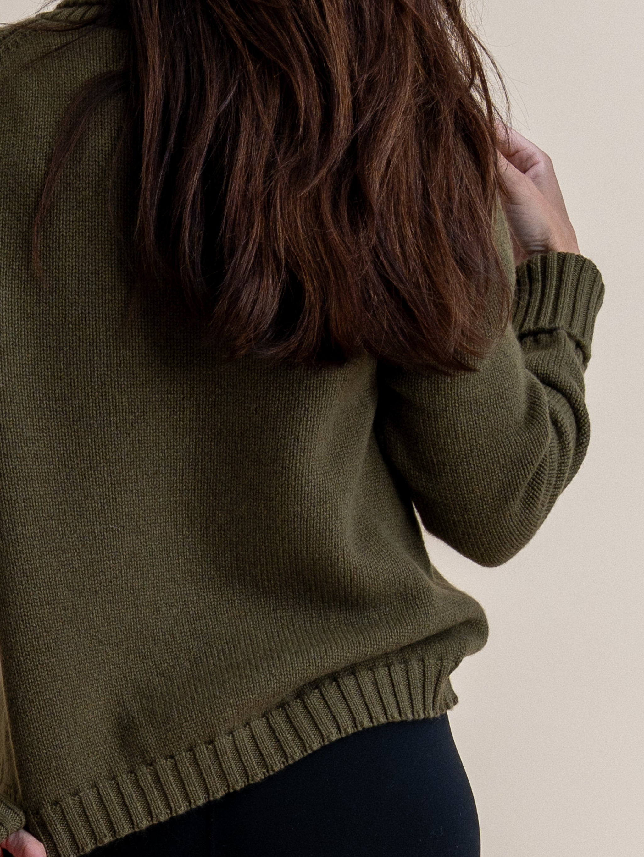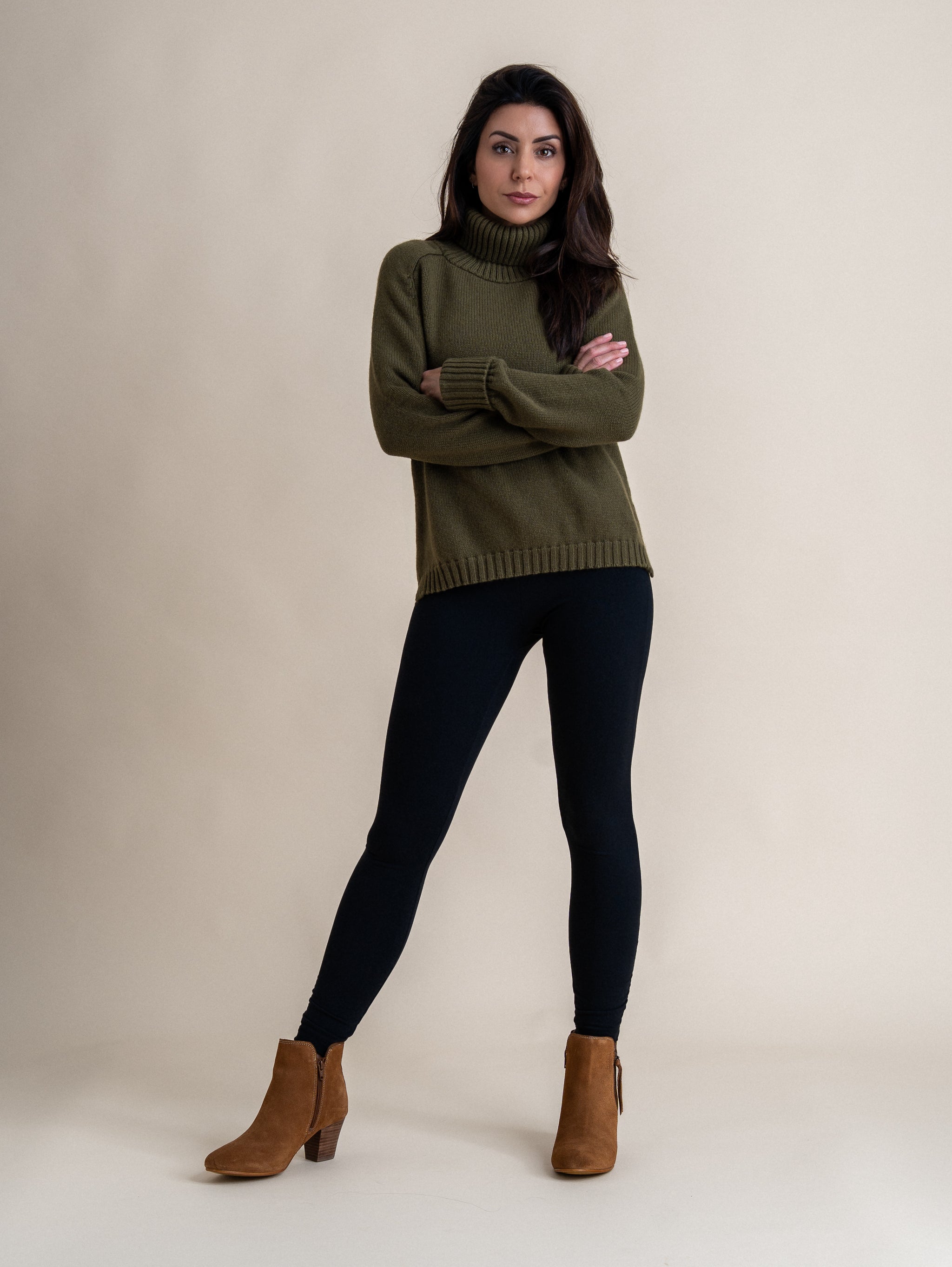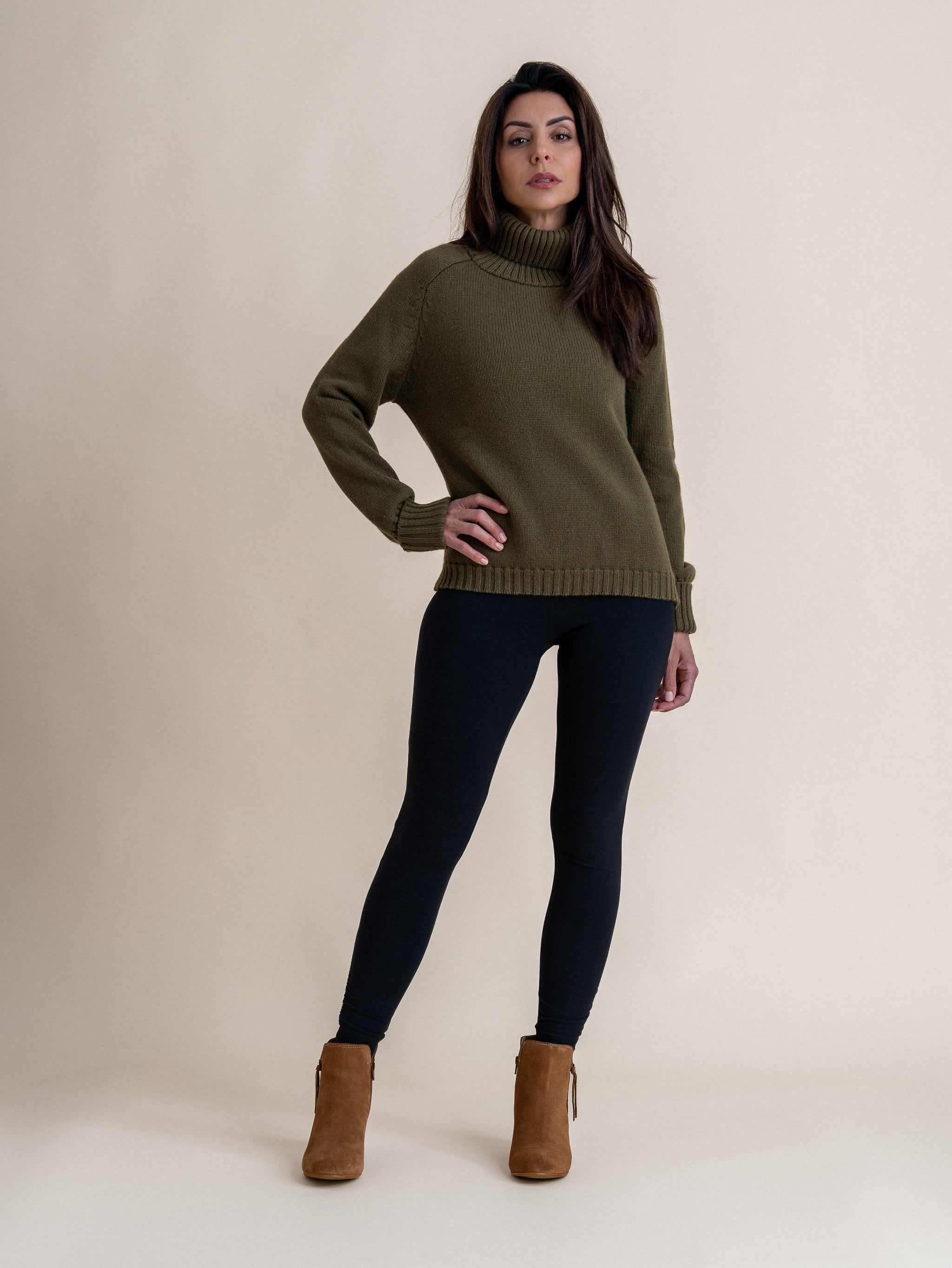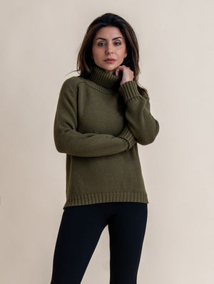 Designed with a soft A-line from the bust down and split hem to allow the sweater to sit past the hips without catching. Turn back cuffs match the roll down collar for a wardrobe staple.